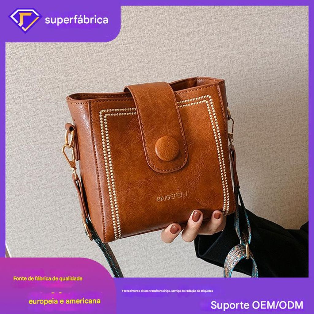 Bolsa Saco Retro em Pele Suave — Bolsa de Ombro Simples, Versátil e Elegante | Bolsa Transversal Feminina de Luxo Leve e Toque Premium
